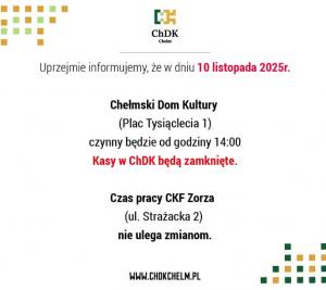 10 listopada Chełmski Dom Kultury czynny będzie od godz. 14:00