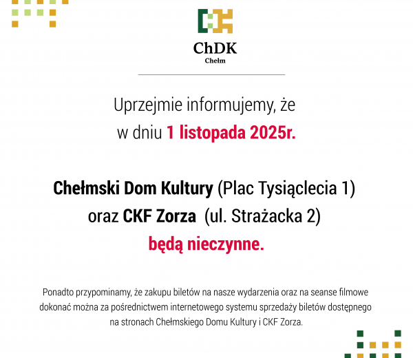 1 listopada Chełmski Dom Kultury i CKF Zorza będą nieczynne