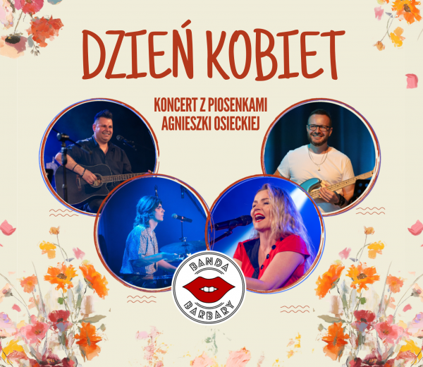 Z okazji Dnia Kobiet zapraszamy na wyjątkowe wydarzenie. Na naszej scenie wystąpi zespół Banda Barbary, który zabierze nas w niezwykłą podróż przez najpiękniejsze utwory legendarnej Agnieszki Osieckiej.